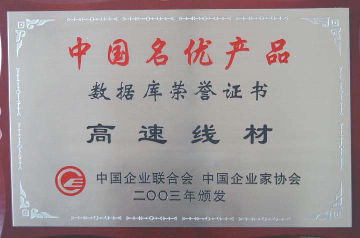 2003年,邢鋼高速線材獲中國名優(yōu)產品數(shù)據(jù)庫榮譽證書。