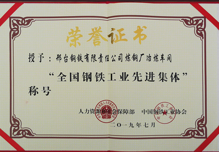 邢鋼煉鋼廠冶煉車間喜獲“全國鋼鐵工業(yè)先進集體”榮譽稱號
