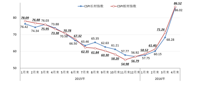 CSPI國內(nèi)長材和板材價(jià)格指數(shù)走勢圖