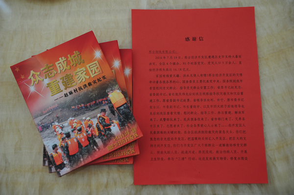 1月19日下午,邢臺(tái)經(jīng)濟(jì)開發(fā)區(qū)政府將一幅書有“情系災(zāi)區(qū)建家園 傾囊捐助顯大愛”的錦旗和感謝信送到我公司,對(duì)邢鋼公司在抗洪救災(zāi)中的支持幫助表示感謝。