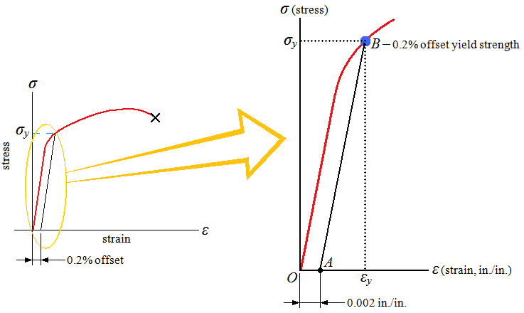 常用的金屬一般為多晶體金屬,因此工程實(shí)際金屬起始塑性變形具有非同時(shí)性特征。在拉伸曲線上具體反映就是沒(méi)有明顯的屈服點(diǎn)。那么,如何界定工程實(shí)際金屬發(fā)生了塑性變形呢?殘留塑性變形量就成為重要的依據(jù),人們通常人為地把一定殘留塑性變形量時(shí)工程金屬對(duì)應(yīng)的抗力作為屈服強(qiáng)度,也稱為條件屈服強(qiáng)度。這很好理解,沒(méi)有明顯的塑性屈服點(diǎn),就沒(méi)有明顯的屈服強(qiáng)度,要想知道實(shí)際金屬的屈服強(qiáng)度就需要一個(gè)判定條件,因此就有了條件屈服強(qiáng)度。對(duì)于不同的金屬構(gòu)件,其條件屈服強(qiáng)度對(duì)應(yīng)的殘留變形量不同。對(duì)于一些苛刻的金屬構(gòu)件,其殘留變形量規(guī)定應(yīng)較小,而普通金屬構(gòu)件條件屈服時(shí)對(duì)應(yīng)的殘留變形量則較大。常用的殘留變形量為0.01%,0.05%, 0.1%,0.2%,0.5%和1.0%等。