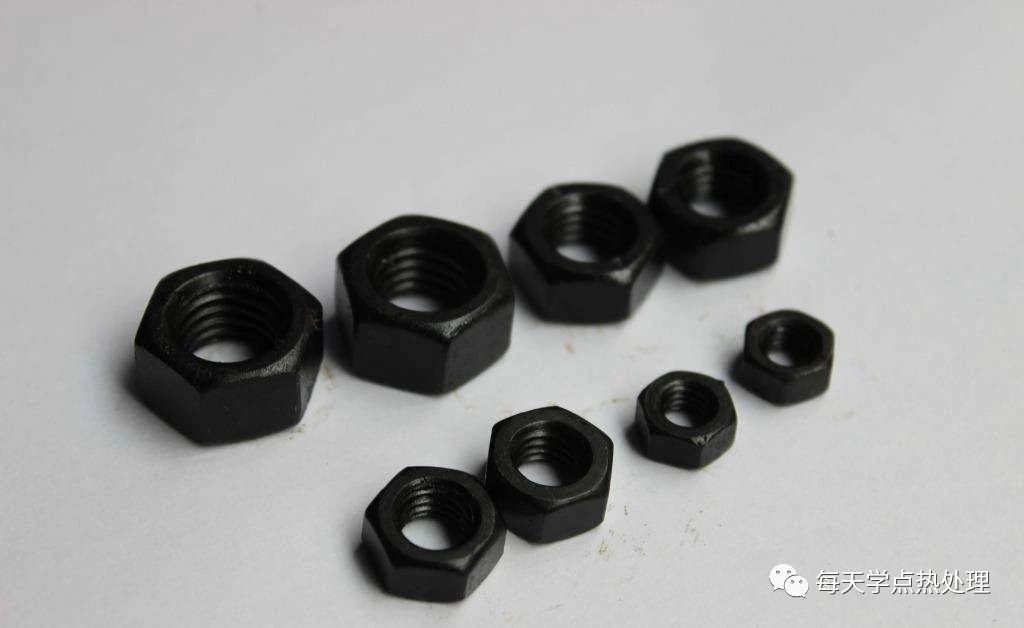 1.4 發(fā)黑處理:是將鋼鐵金屬零件浸沒在很濃的堿和氧化劑的溶液中,在一定溫度下加熱、氧化,使金屬表面生成一層均勻致密而且與基體金屬表面結合牢固的四氧化三鐵薄膜的工藝。這層薄膜,對金屬表面的防腐有很好的作用。由于實際生產中受各種因素的影響,這層薄膜的顏色有藍黑色、黑色、藍色(所以有時又稱發(fā)藍)等等。