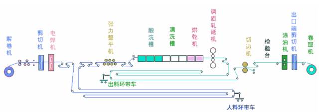 連續(xù)式酸洗是一種高產(chǎn)優(yōu)質(zhì),發(fā)展較快的酸洗方法,它是通過在機組上設置焊機和活套裝置,使工藝段在換卷時不停機,保證機組連續(xù)運行,但機組長,設備復雜,投資較高。連續(xù)式酸洗線主要有兩種形式,分別是連續(xù)臥式酸洗機組和連續(xù)塔式酸洗機組。