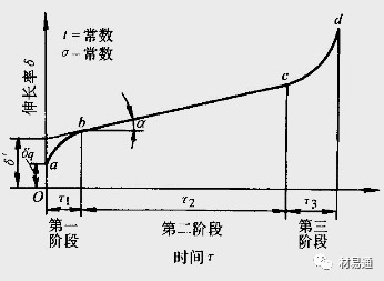 第三階段cd為加速蠕變階段隨著時(shí)間的延長,蠕變速率逐漸增大,到d點(diǎn)時(shí)產(chǎn)生蠕變斷裂。