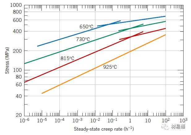 同一溫度下,蠕變第二階段應(yīng)力σ與穩(wěn)態(tài)蠕變速率ε之間,在雙對(duì)數(shù)坐標(biāo)中呈線性經(jīng)驗(yàn)關(guān)系。