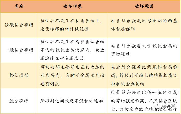 當(dāng)摩擦副相對(duì)滑動(dòng)時(shí), 由于粘著效應(yīng)所形成結(jié)點(diǎn)發(fā)生剪切斷裂,被剪切的材料或脫落成磨屑,或由一個(gè)表面遷移到另一個(gè)表面,此類磨損稱為粘著磨損。