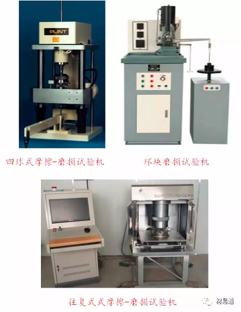 磨損試驗(yàn)儀器:滾子式磨損試驗(yàn)機(jī)、環(huán)塊磨損試驗(yàn)機(jī)、旋轉(zhuǎn)圓盤一銷式磨損試驗(yàn)機(jī)、往復(fù)式摩擦-磨損試驗(yàn)機(jī)、四球式摩擦-磨損試驗(yàn)機(jī)、接觸疲勞試驗(yàn)機(jī)、濕磨科磨試驗(yàn)機(jī)。