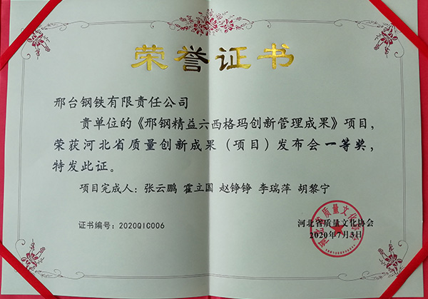 為激發(fā)萬眾創(chuàng)新熱情,提高創(chuàng)新質量,促進創(chuàng)新交流,河北省質量文化協(xié)會于2020年7 月2日至3日在石家莊召開了河北省第三屆質量創(chuàng)新成果(項目)發(fā)布會。經(jīng)申報材料評審,大會發(fā)表,專家評審,邢臺鋼鐵有限責任公司申報的4項質量創(chuàng)新成果(項目)全部獲獎。