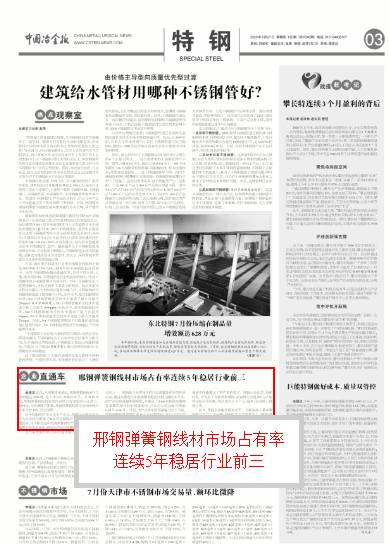 本報訊 近日,從邢鋼傳來消息,邢鋼彈簧鋼線材7月份銷量達(dá)4786噸,是今年初以來最好水平。從2015年起,邢鋼彈簧鋼線材在國內(nèi)市場占有率穩(wěn)居行業(yè)前三。2019年,受環(huán)保限產(chǎn)影響,邢鋼彈簧鋼線材在全國市場占有率為21.19%,居全國第二。