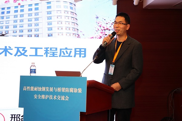在技術(shù)交流環(huán)節(jié),本次會議共安排了15場次的專家報告。包括中國鋼研科技集團有限公司、邢臺鋼鐵有限責(zé)任公司、首鋼集團有限公司、馬鞍山鋼鐵股份有限公司、中交一公路勘察設(shè)計研究院有限公司、蘇交科集團股份有限公司、上海市城市建設(shè)設(shè)計研究院總院、武漢重型工程股份有限公司、山東電工電氣有限公司、中鐵寶橋集團有限公司、中鐵山橋集團有限公司、固瑞克流體設(shè)備(上海)有限公司、武漢雙虎涂料有限公司、河南青山環(huán)??萍加邢薰?、廣州集泰化工股份有限公司等技術(shù)專家在會上做了精彩的技術(shù)分享。報告內(nèi)容題材涉及廣泛、內(nèi)容充實,既有正向設(shè)計、行業(yè)應(yīng)用、案例分析,又有新技術(shù)、行業(yè)標準、相關(guān)政策深度解讀。學(xué)術(shù)分享、學(xué)習(xí)交流氛圍濃厚,與會代表反響熱烈。其中,邢鋼首席技術(shù)專家 技術(shù)中心線材應(yīng)用研究所所長阮士朋作了《高強韌耐候螺栓用鋼關(guān)鍵技術(shù)及工程應(yīng)用》精彩主題演講,引起了與會專家、學(xué)者的普遍關(guān)注。
