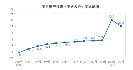 2021年1-3月全國(guó)固定資產(chǎn)投資增長(zhǎng)25.6%