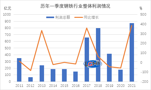 熱點(diǎn)事件:國家統(tǒng)計(jì)局?jǐn)?shù)據(jù)顯示,2021年一季度,黑色金屬冶煉和壓延加工業(yè)實(shí)現(xiàn)營業(yè)收入20483.1億元,同比增長50.5%;營業(yè)成本18837.3億元,同比增長47.7%;實(shí)現(xiàn)利潤總額871.4億元,同比增長387.6%。