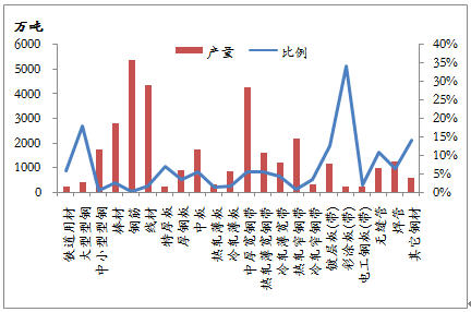 1-5月份,我國共出口鋼材1791.7萬噸,棒線材、角型材、板材、鋼管、鐵道用材和其它用材分別占11.4%、5.9%、60.1%、15.4%、1.0%和6.2%,板材所占份額最大,棒線材和鋼管次之。就前5個(gè)月出口量而言,退稅取消的鋼材品種出口數(shù)量為703.3萬噸,占1-5月份鋼材出口總量的39.3%。雖然鋼材總出口量只占到國內(nèi)產(chǎn)量的5.1%,但仍有部分品種出口占產(chǎn)量的比例較大,對出口具有一定依賴性。鍍鋅板、熱軋板卷、中厚板和大型型鋼的出口數(shù)量占產(chǎn)量的比例較大,在出口稅率下調(diào)的情況下,國內(nèi)資源供應(yīng)的壓力將會(huì)明顯增大,從而影響到國內(nèi)價(jià)格的運(yùn)行。不過,在政策執(zhí)行日期之前,出口企業(yè)必定要加緊落實(shí)前期簽訂的合同,熱軋卷等品種的出口可能會(huì)加大,對國內(nèi)鋼材市場將是利好。
