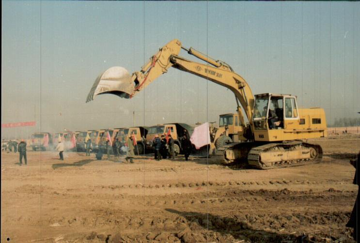圖為1995年破土動(dòng)工建設(shè)的場(chǎng)景,鞭炮的硝煙尚未消散,挖掘機(jī)抬起挖斗正要挖下第一鏟,運(yùn)輸車整裝待發(fā),“煉鋼”來(lái)了!
