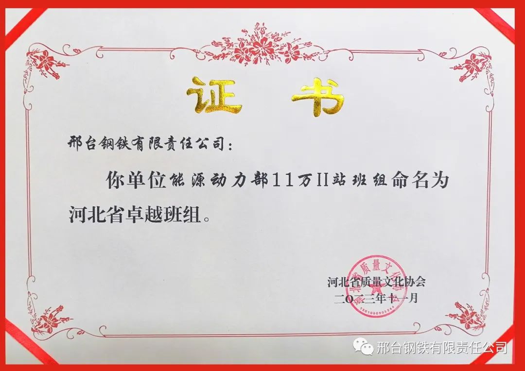 從近日召開的河北省第七屆卓越班組代表會(huì)暨經(jīng)驗(yàn)交流會(huì)上獲悉,邢鋼班組建設(shè)成績典型做法和成功經(jīng)驗(yàn),得到現(xiàn)場(chǎng)評(píng)審專家的一致認(rèn)可和高度評(píng)價(jià)。經(jīng)最終評(píng)審,邢鋼能源動(dòng)力部11萬Ⅱ站榮獲“2023年度河北省卓越班組”稱號(hào);焦化廠備煤甲班班組、煉鋼廠連鑄維修電氣班、線材廠精品五線乙班班組等3個(gè)班組榮獲“2023年度河北省卓越班組建設(shè)先進(jìn)班組”稱號(hào)。
