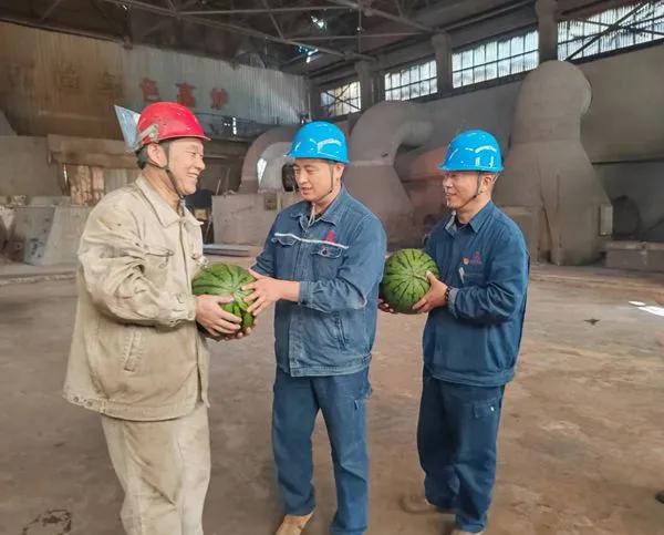 入夏以來,持續(xù)出現(xiàn)高溫天氣,炎炎夏日,揮汗如雨。為保障一線員工的身體健康,近日,由線材廠廠長孔令波帶隊(duì)到生產(chǎn)線高溫崗位為員工送清涼,為堅(jiān)守在生產(chǎn)一線員工送去了飲料、西瓜等防暑降溫食品,并對(duì)員工工作、身體情況進(jìn)行慰問。