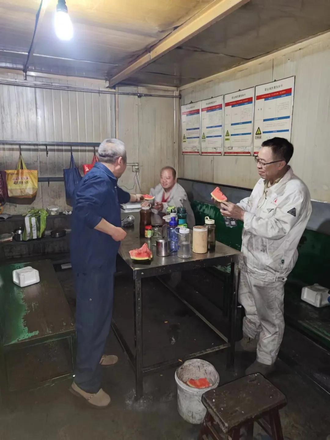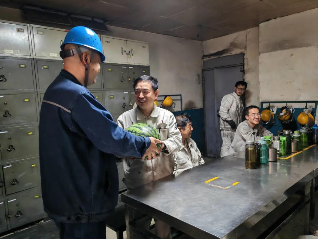 6月10日上午,公司副總經(jīng)理侯浩然、副廠長王華一行來到煉鐵廠高爐爐前東場(chǎng)和西場(chǎng)、輔助噴煤崗位、二燒混合機(jī)檢修現(xiàn)場(chǎng)、二燒看火、原料131等崗位,帶來西瓜等飲品,代表公司和廠部看望奮戰(zhàn)在一線辛勤作業(yè)的員工們。