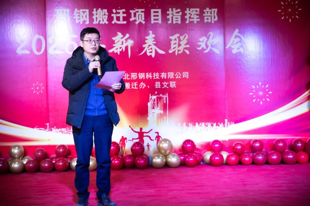 在熱烈、融洽的氣氛中,聯(lián)歡會(huì)拉開帷幕。威縣縣委常委、宣傳部長、搬遷專班班長白鋒發(fā)表致辭。他代表威縣縣委、縣政府,向所有關(guān)心支持邢鋼搬遷改造項(xiàng)目的各級領(lǐng)導(dǎo)和參與建設(shè)的同志們表達(dá)了崇高的敬意和衷心的感謝。并高度評價(jià)了邢鋼人在過去一年中展現(xiàn)出的團(tuán)結(jié)協(xié)作、頑強(qiáng)拼搏的精神,表示威縣政府將繼續(xù)全力支持邢鋼搬遷項(xiàng)目,推動(dòng)項(xiàng)目早日建成投產(chǎn),為威縣經(jīng)濟(jì)發(fā)展做出更大貢獻(xiàn)。