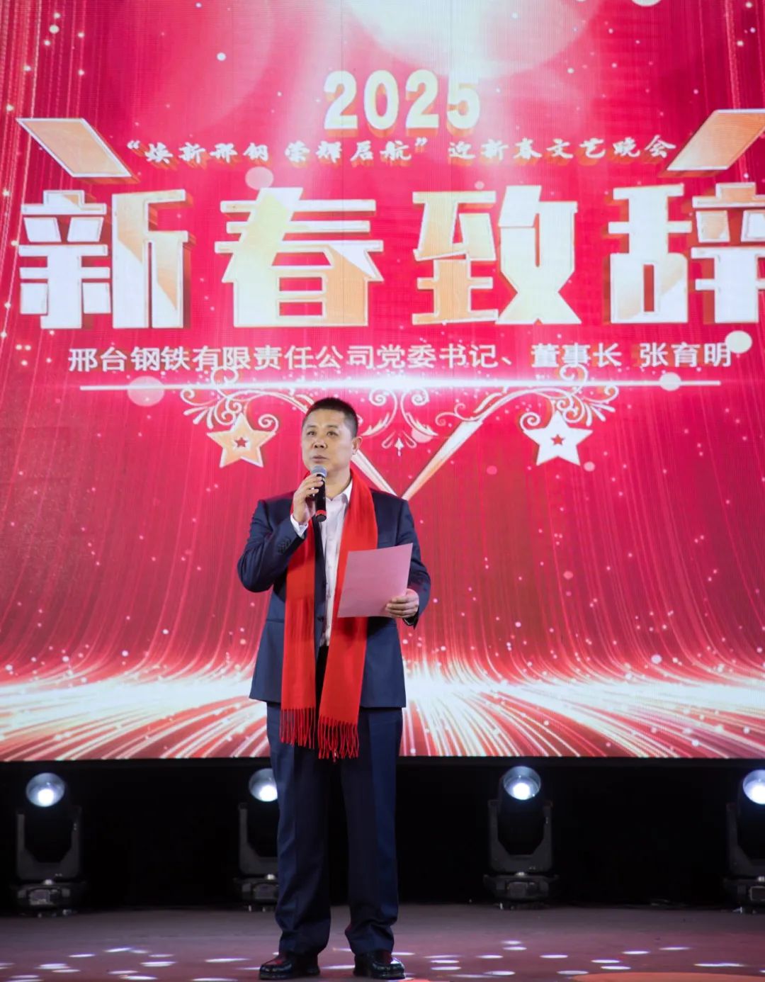 歲序更替,華章日新。1月22日,以“煥新邢鋼,榮耀啟航”為主題的邢鋼2025年新春聯(lián)歡會(huì)在公司會(huì)議中心炫彩啟帷。公司黨委書記、董事長(zhǎng)張育明攜公司全體中高層領(lǐng)導(dǎo)與2024年受表彰的先進(jìn)個(gè)人、員工代表歡聚一堂,喜迎乙巳年新春。