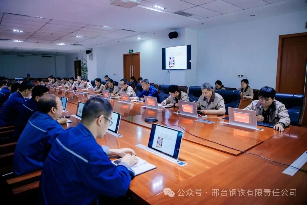 At the meeting, all participants watched the themed Party lecture promotional video Confident China: On New-Quality Productive Forces. Through the learning session, all attendees reached a profound understanding that against the backdrop of the current economic situation, new-quality productive forces have emerged as a robust driving force for the high-quality development of enterprises. Accurately grasping and vigorously cultivating new-quality productive forces carries crucial strategic significance for enterprises to break through development bottlenecks and seize the commanding heights of future competition. As enterprise managers, it is imperative to translate the requirements of new-quality productive forces into concrete practices of innovating development concepts and driving technological breakthroughs, so as to forge core competitiveness for the new Xingtai Iron and Steel that is geared towards the future.